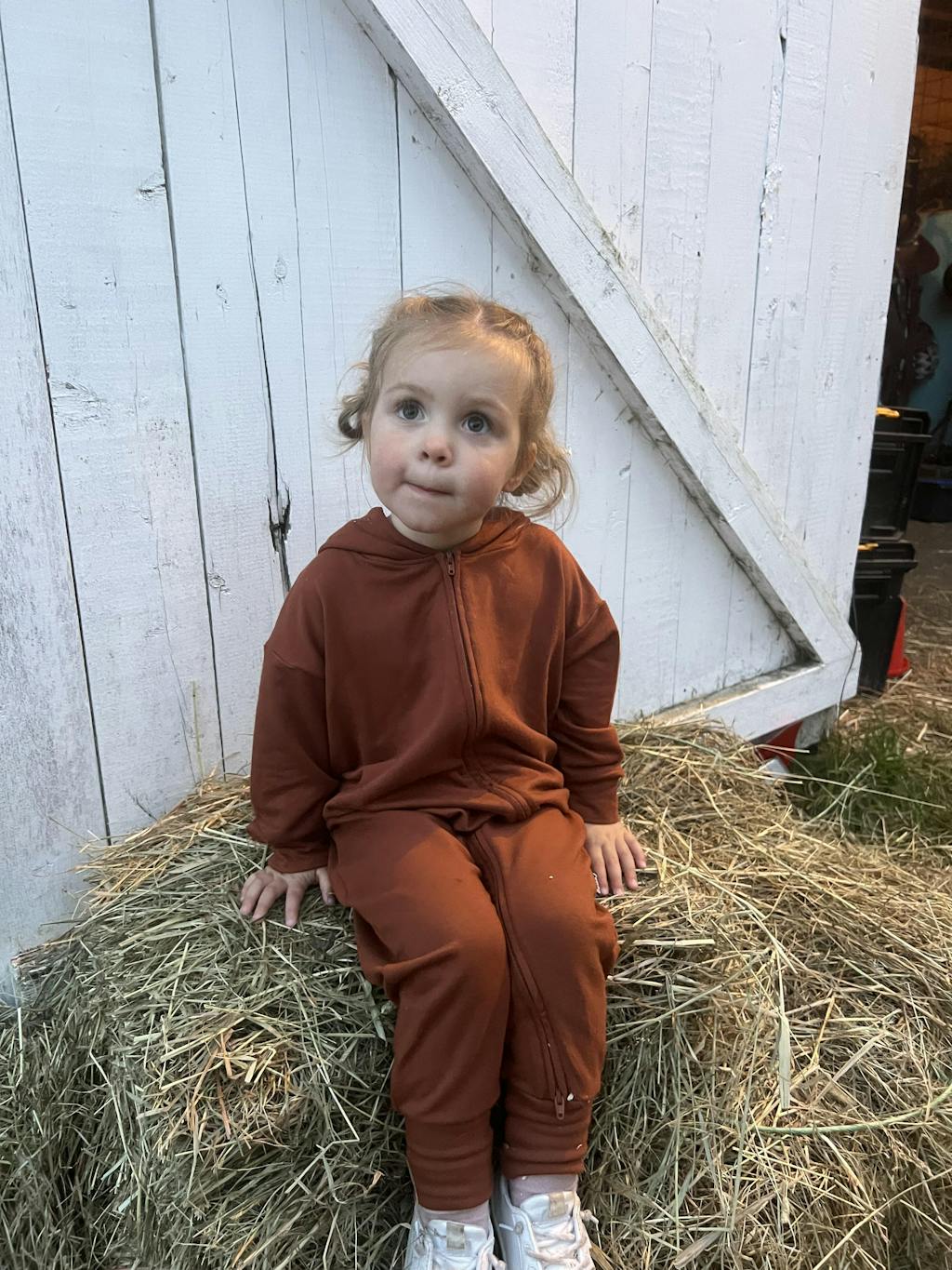 This hooded jumpsuit features a baggy fit to allow for layering and movement. With a zipper from neck to ankle, getting this off and on your little one is a breeze. The lined hood makes this romper extra cozy during cooler months.