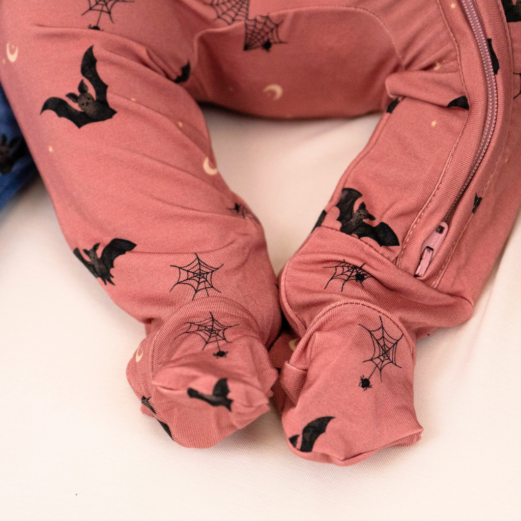 Footed sleeper made in buttery soft bamboo rayon for the perfect night sleep. Bamboo is very breathable and moisture wicking which makes it the ideal fabric for infant sleepwear. 2-way zipper closure makes for easy diaper changes while fold over cuffs* and chin guard keep baby safe from scratches and pinches. Sizes 6-12M & 12-18M have silicone grippers on soles to prevent slipping.
