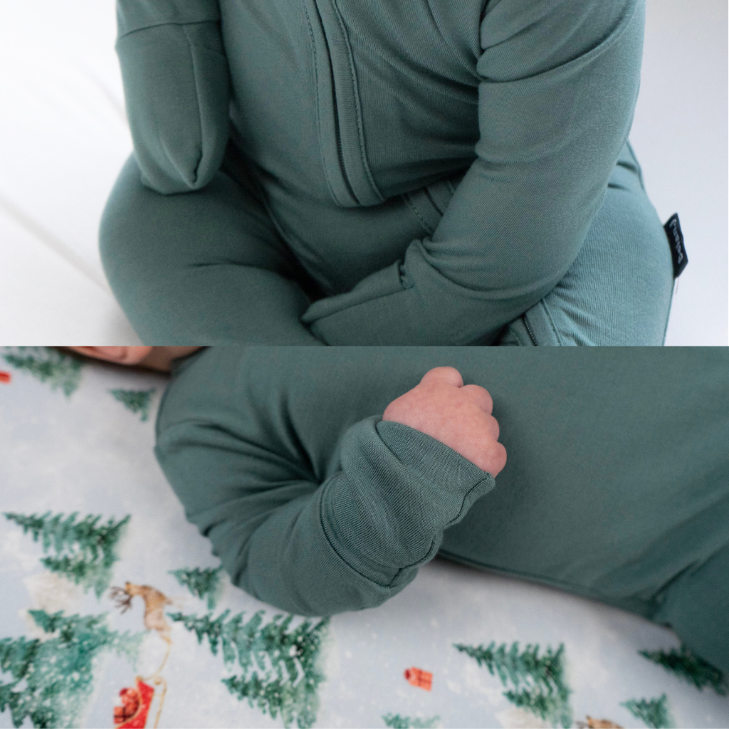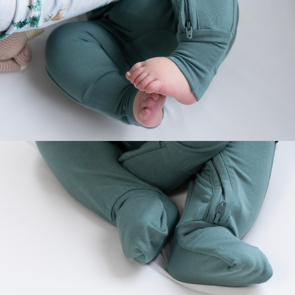 Footless sleeper crafted in buttery soft, premium bamboo rayon for the perfect night sleep. Bamboo is breathable and moisture wicking which makes it the ideal fabric for infant sleepwear. 2-way YKK zipper closure makes for easy diaper changes while fold over cuffs and chin guard keep baby safe from scratches and pinches. Sleeper features fold over foot cuffs to give the option to cover the feet on cooler nights.