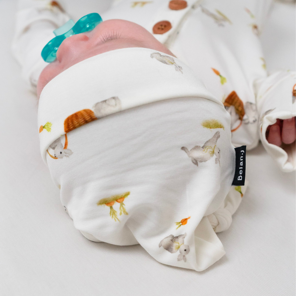 Keep baby’s head warm and covered with this super soft Bamboo Rayon knotted hat. Bamboo feels great against sensitive skin and can help ease skin irritation from things such as eczema. Knot can be adjusted as baby grows. Pair with a matching footed sleeper for a coordianted look - essential baby layette!