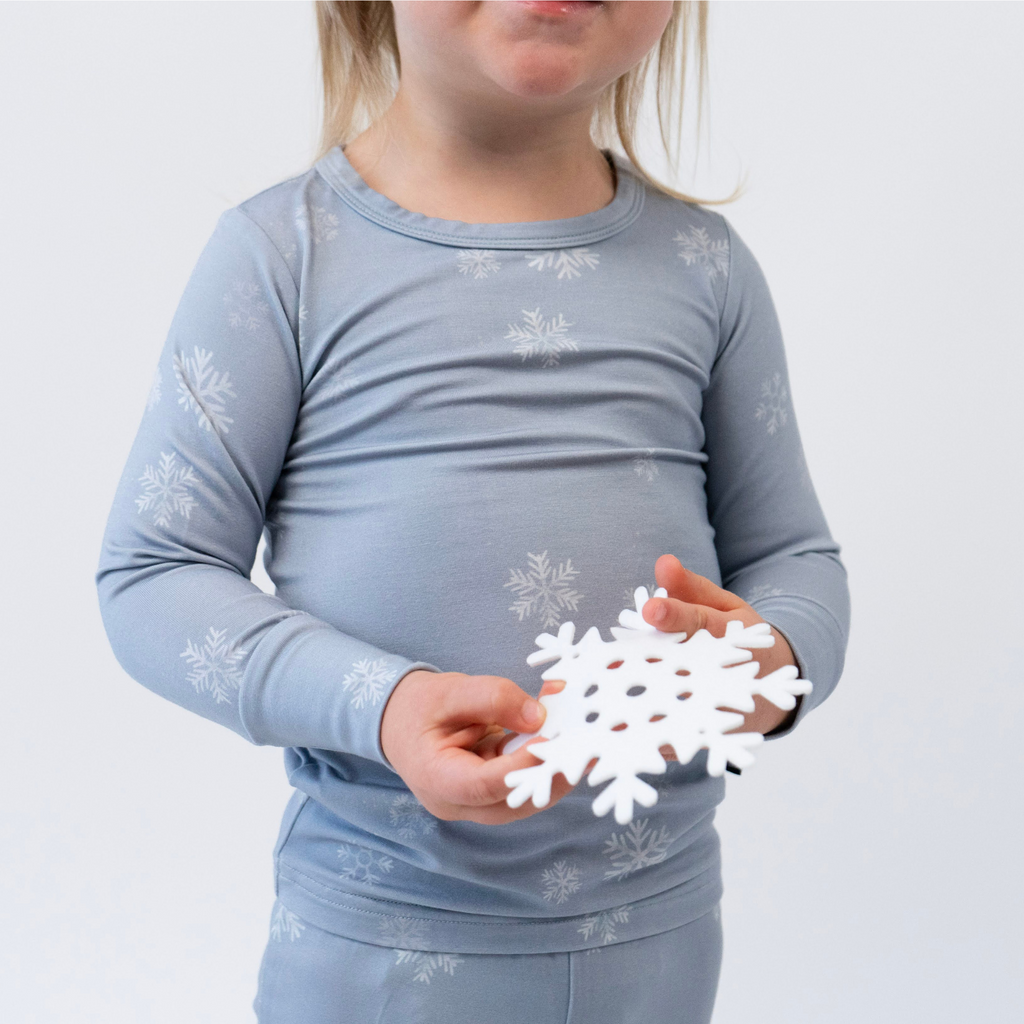 Digitally printed with our custom SNOWFLAKES print. This winter print features delicate snowflakes on a icy blue background.