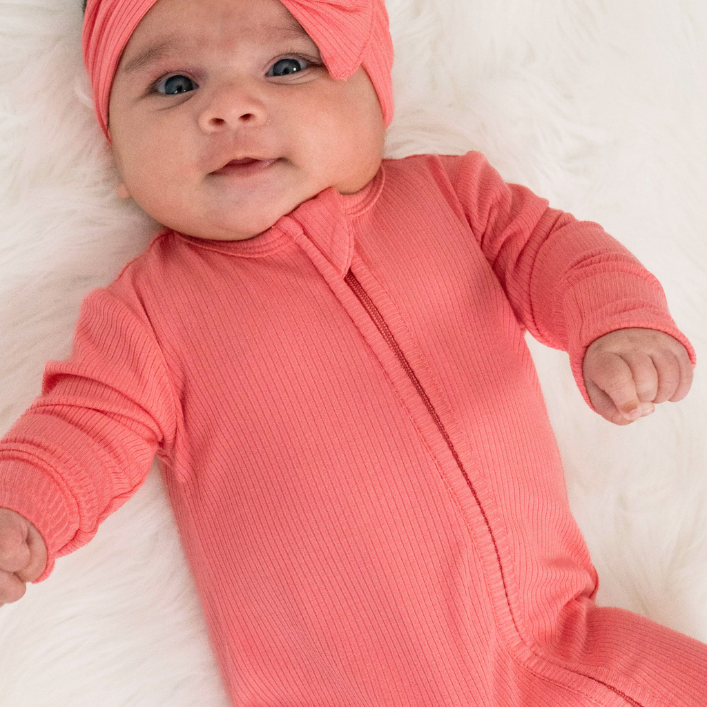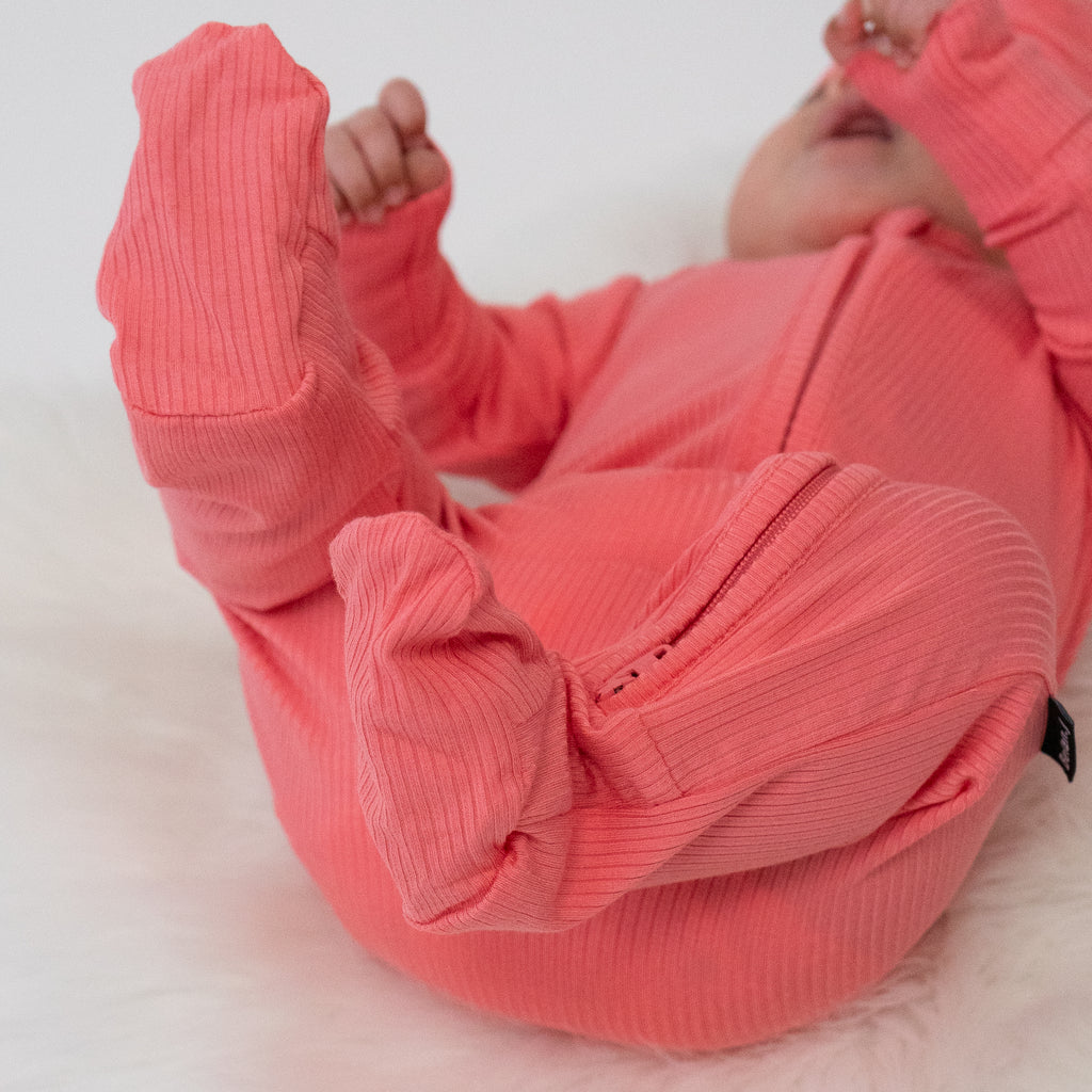 Ribbed Bamboo Footed Zipper Sleeper - Candy Pink