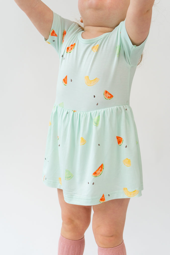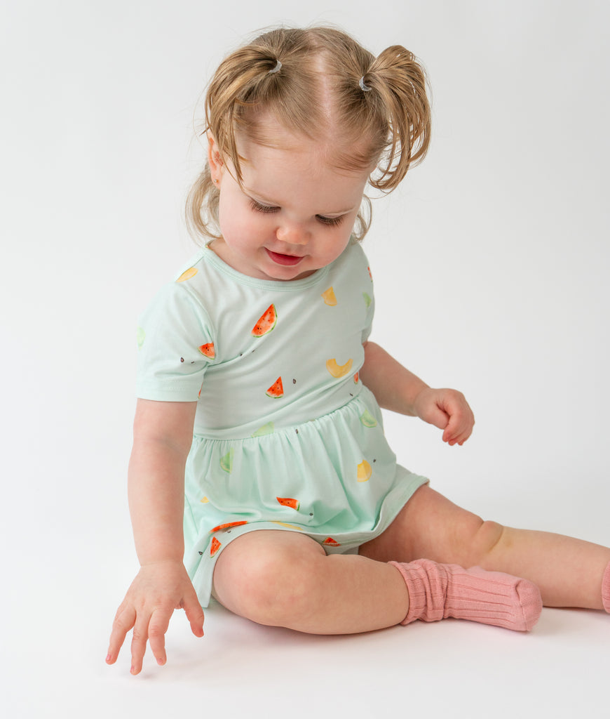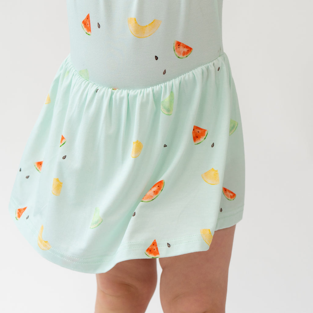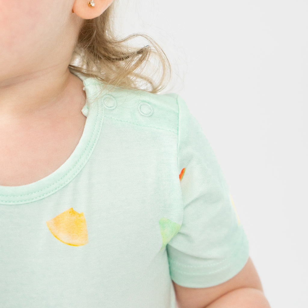 Fabric is digitally printed with our custom Melons print featuring watermelon, cantaloupe, and honey dew on a soft mint background.