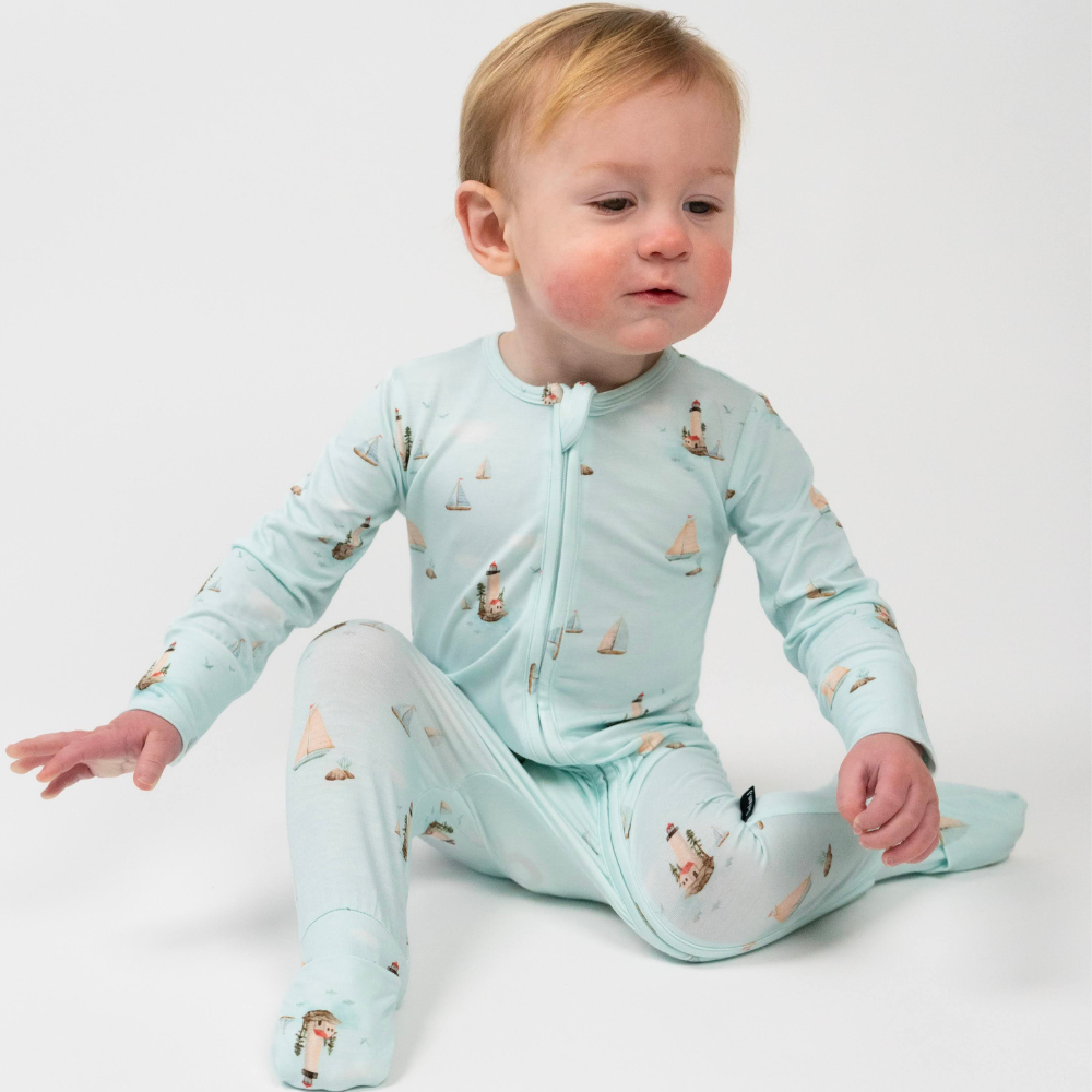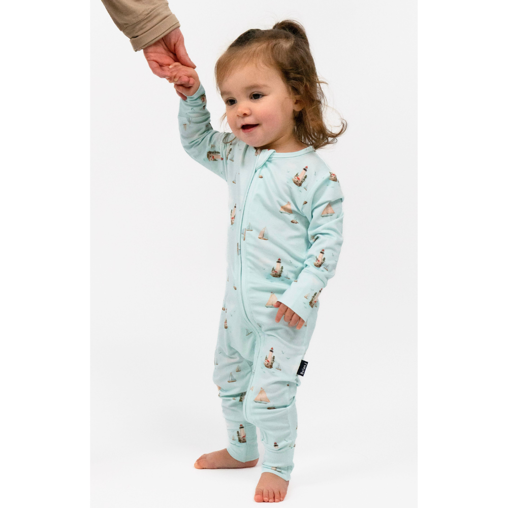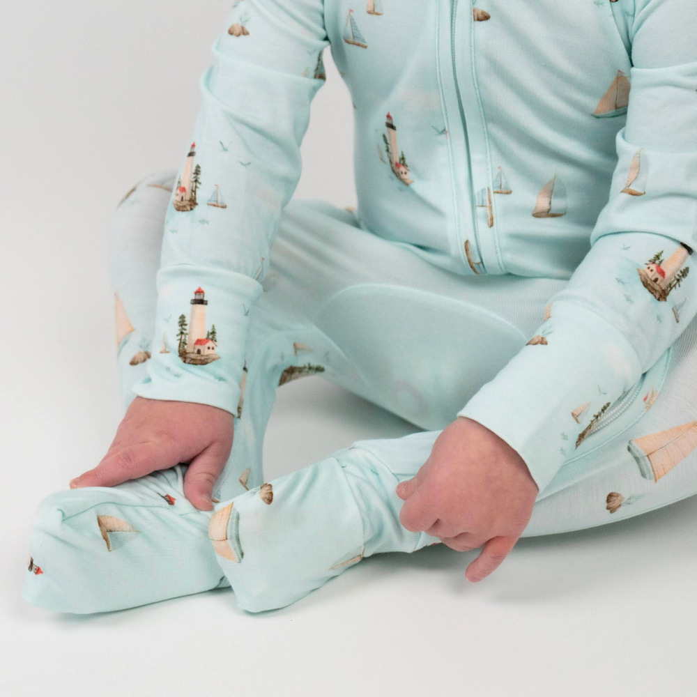 Footless Sleeper with Fold-Over Cuffs - Lighthouse