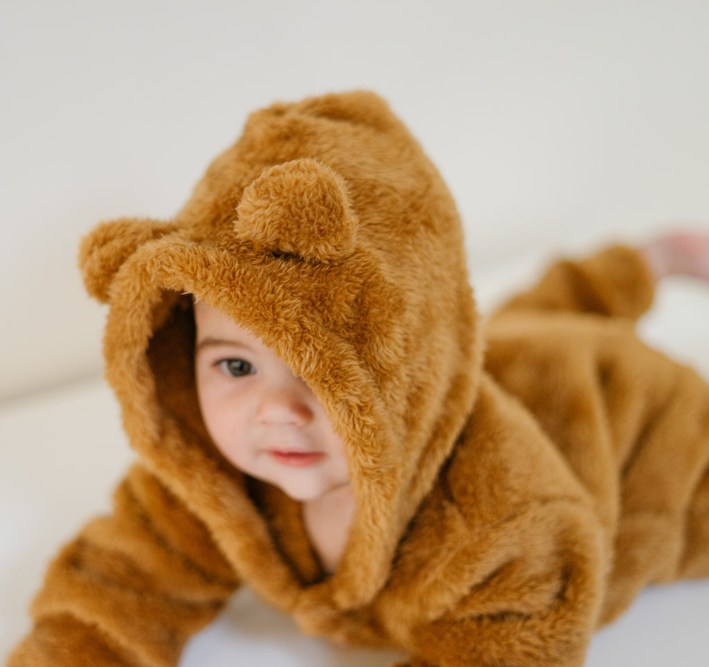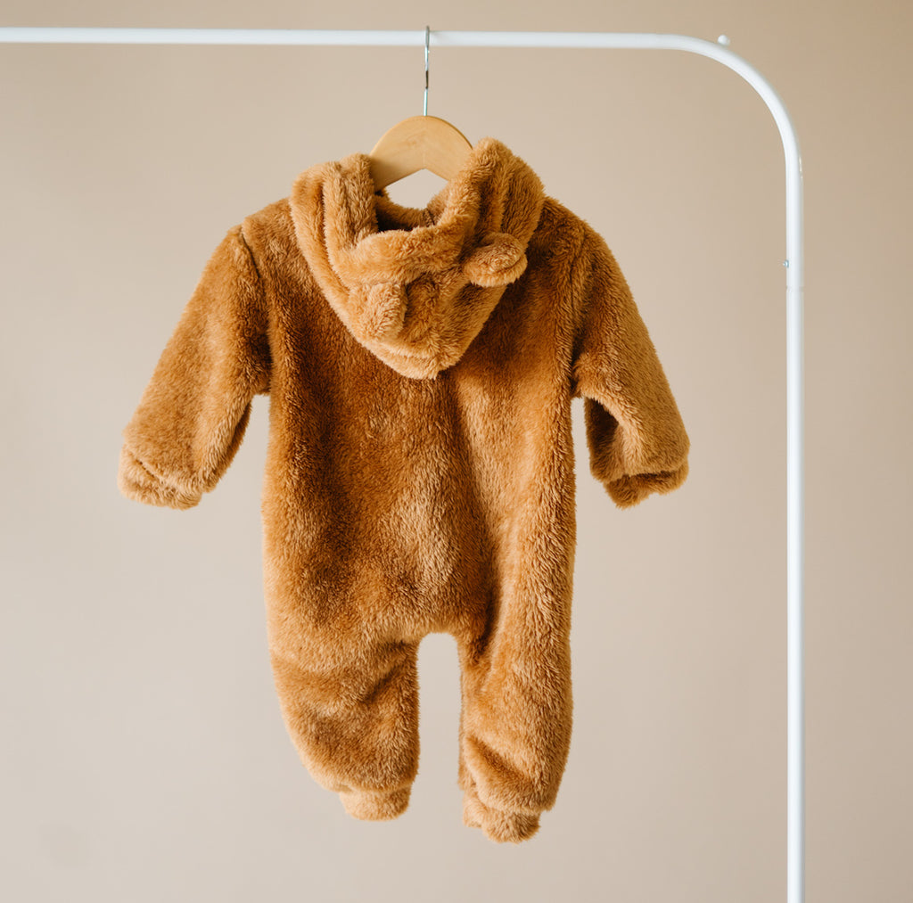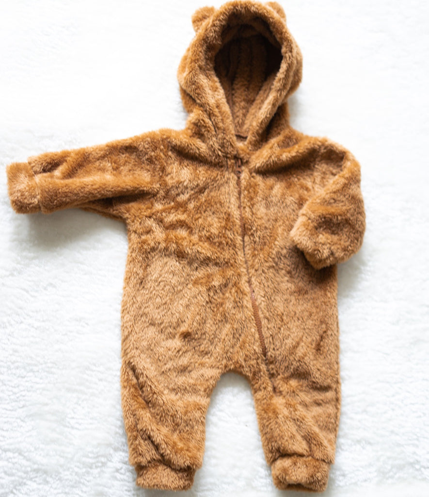 Keep your babe warm this winter in our fuzzy fleece teddy suit. Designed to fit comfortably over the day's outfit, this is the perfect top layer for cold weather walks or errands. The full length zipper makes getting this on/off your little one easy. Besides, who doesn't want to dress their babe up like a cuddly teddy bear?