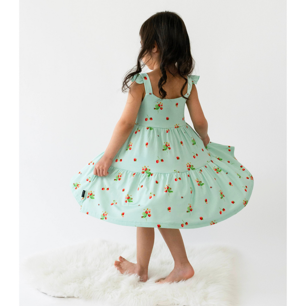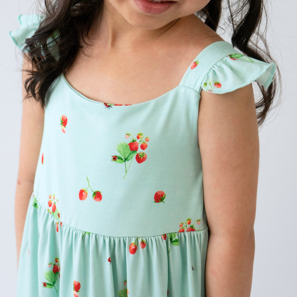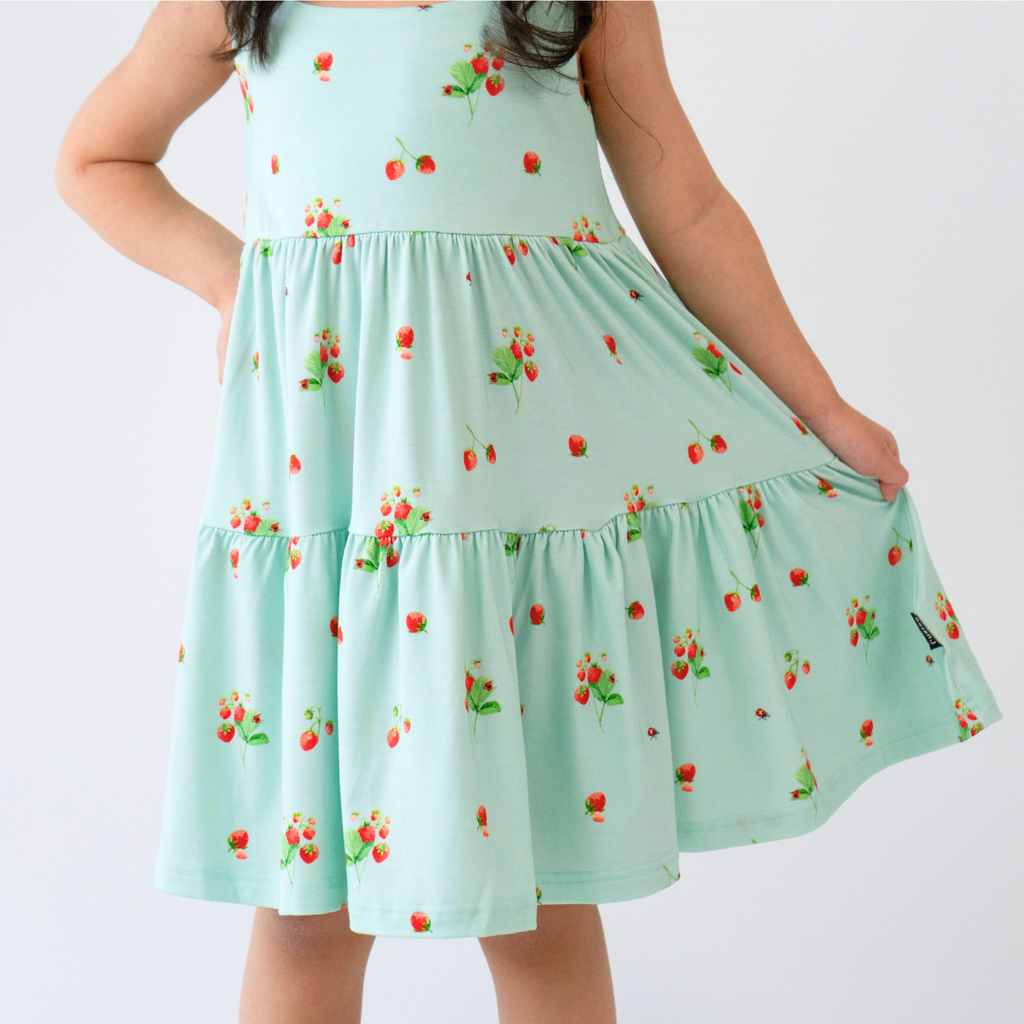 Made from buttery soft bamboo fabric, this dress is a perfect blend of elegance and softness, ensuring your child looks and feels fabulous on any occasion. Our tiered dress features ruffled straps, making it ideal for warmer days. The bamboo fabric offers exceptional breathability, keeping your child cool and comfortable throughout the day.