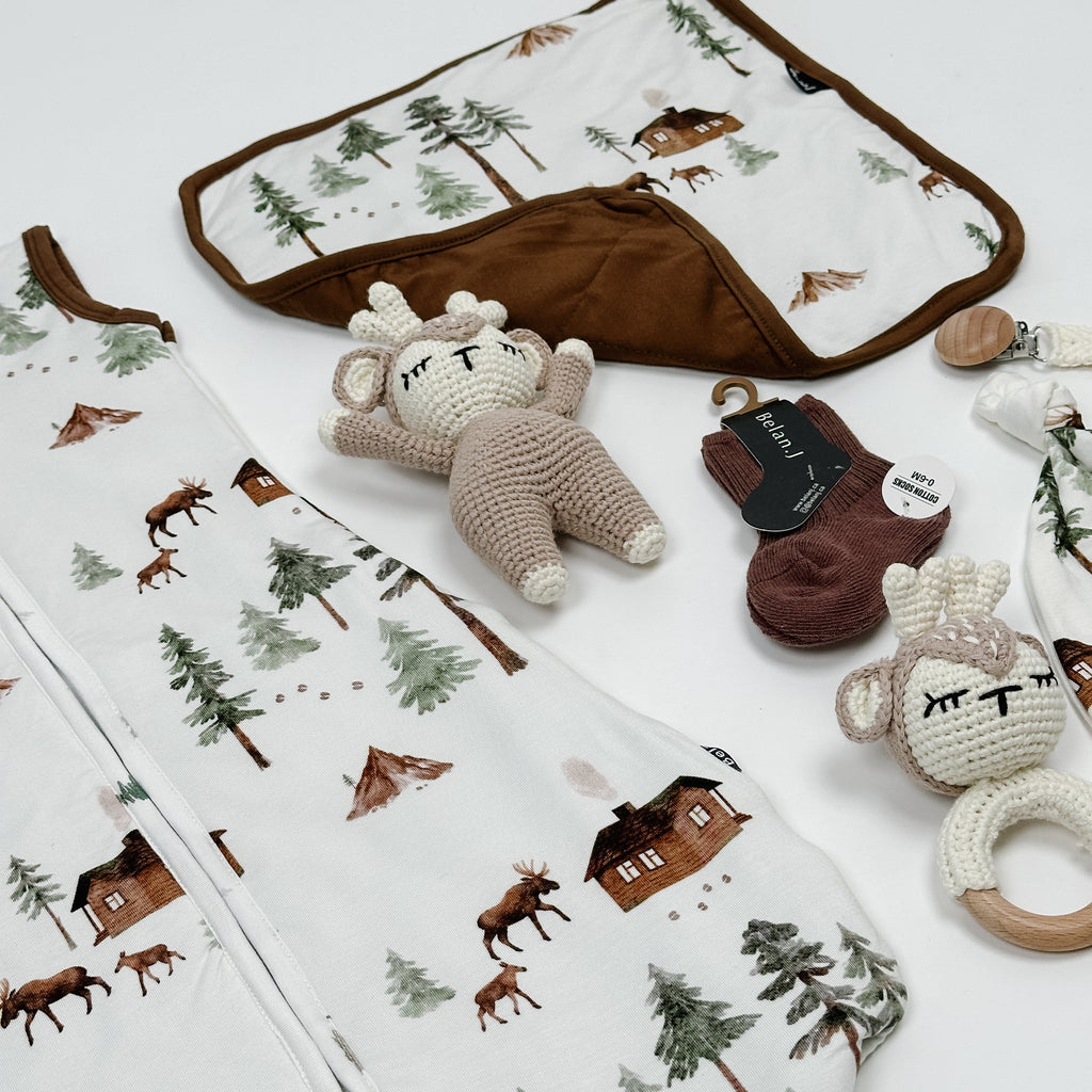 - Lovey: A soft, bamboo lovey with a loop to attach a pacifier or teether.