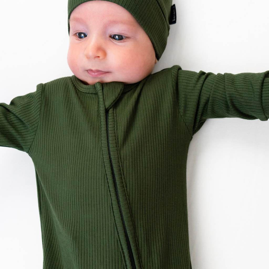 Ribbed Bamboo Footed Zipper Sleeper - Forest Green