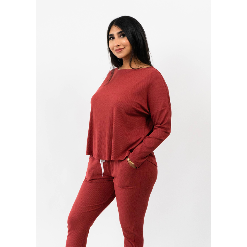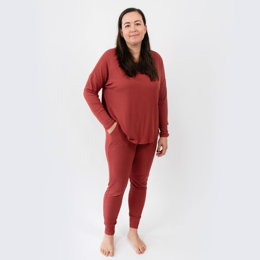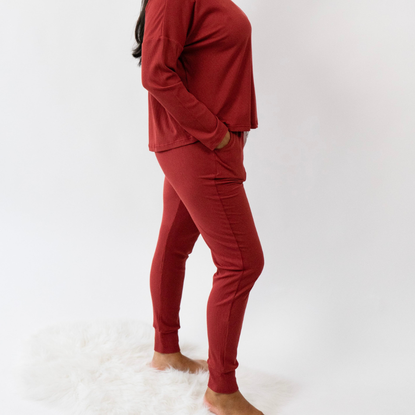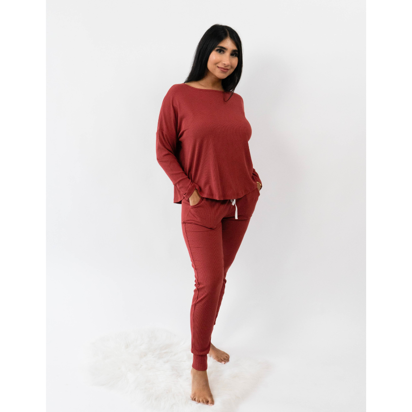 Women's Ribbed Bamboo Long Sleeve PJ Set - Burgundy