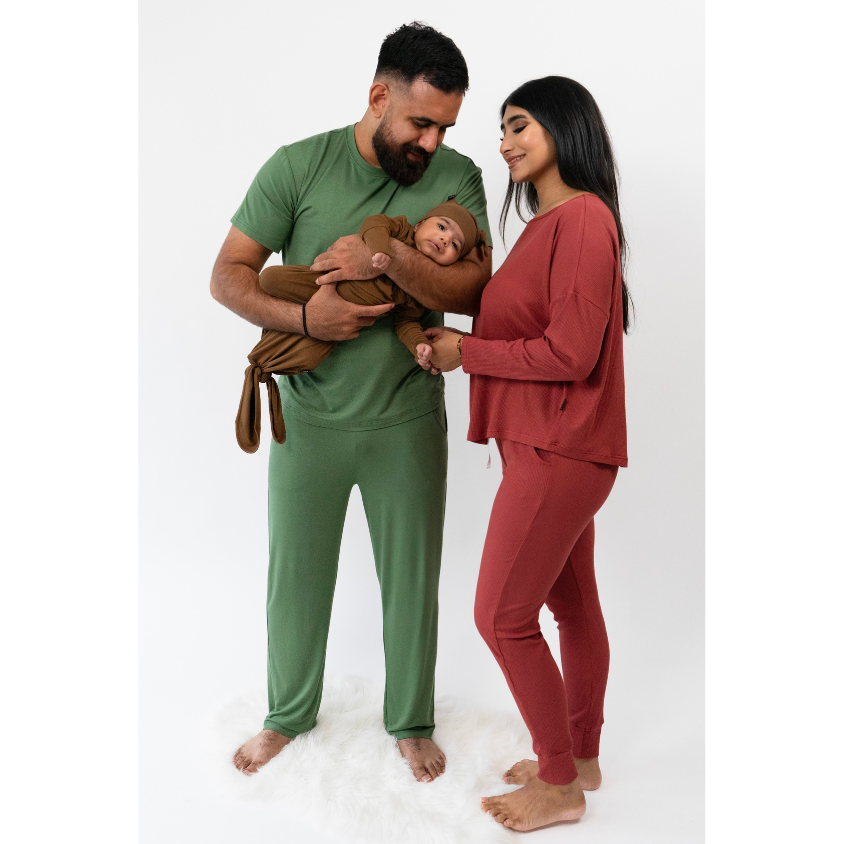 Made from our Luxe Ribbed Bamboo Rayon, this set was made for cozy cuddles. The top features a comfortable loose fit in a boxy style through the torso with drop shoulder fitted sleeves and a mid-hip length. The jogger pants feature a comfortable wide waistband with a functional drawstring, front pockets and a relaxed fit with a cuff.