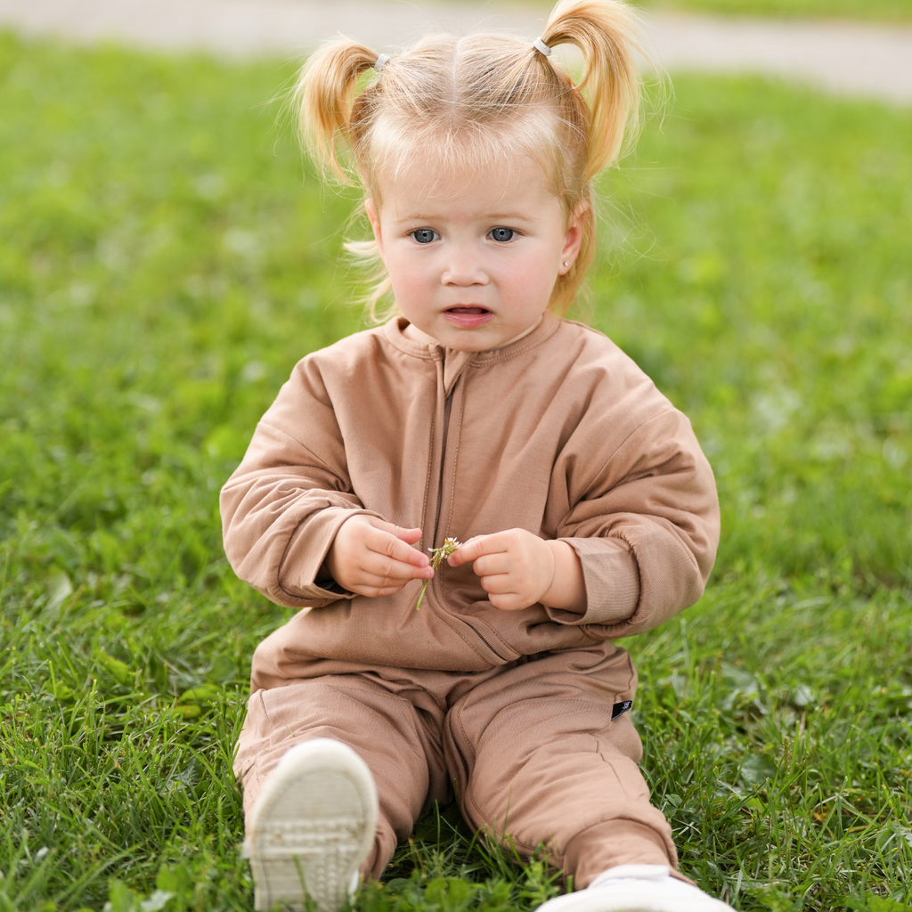 The perfect daywear for Canadian winters! Crafted from our buttery-soft Bamboo Rayon with a 1.0 TOG filling, this quilted romper is perfect for keeping little ones warm and cozy through fall and winter. A 2-way YKK zipper runs down one leg, making dressing and diaper changes a breeze. The relaxed fit allows room for layering underneath, while still fitting comfortably under rain gear.