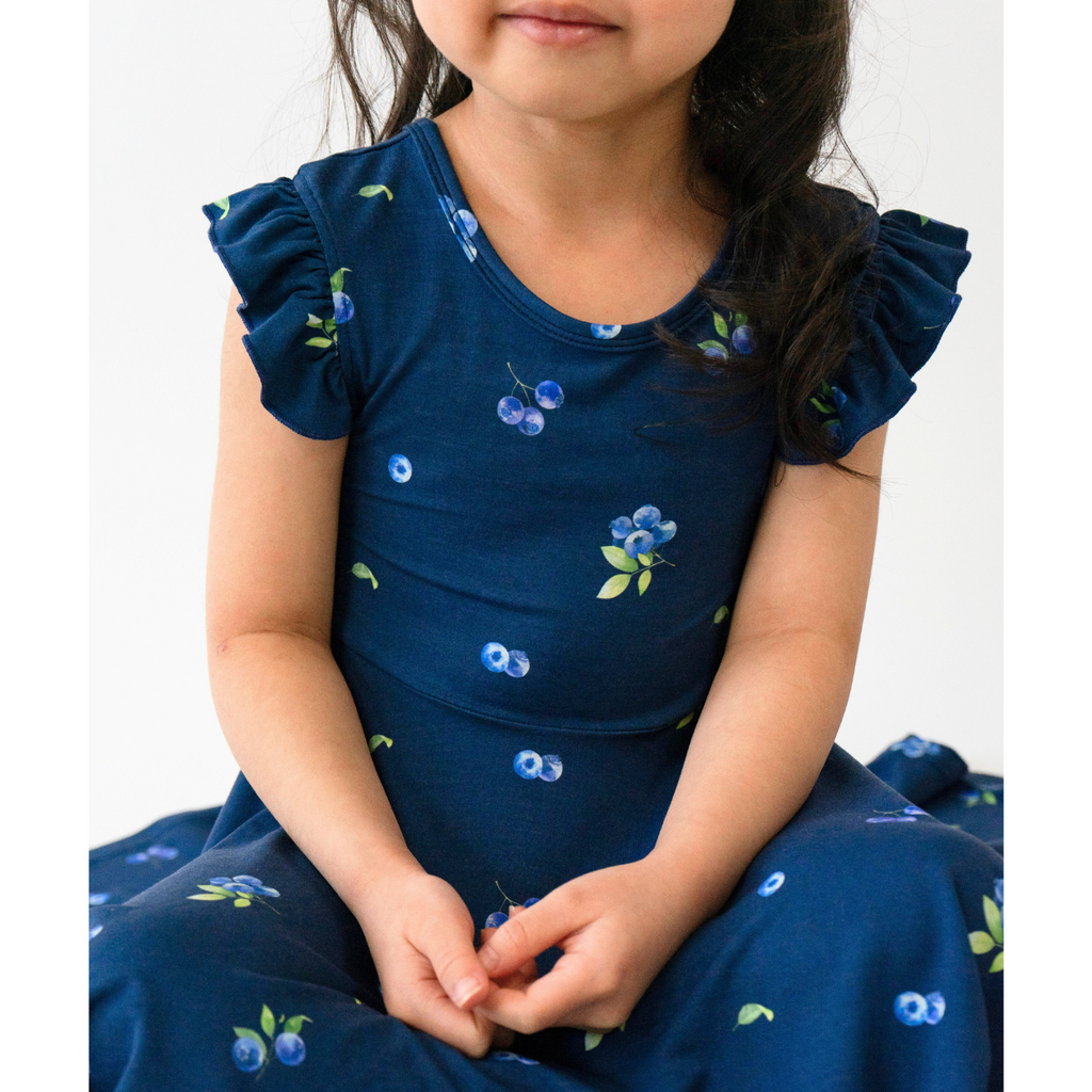 A summer time favourite! Our Blueberries print features of clusters of juicy blueberries on a deep blue background.