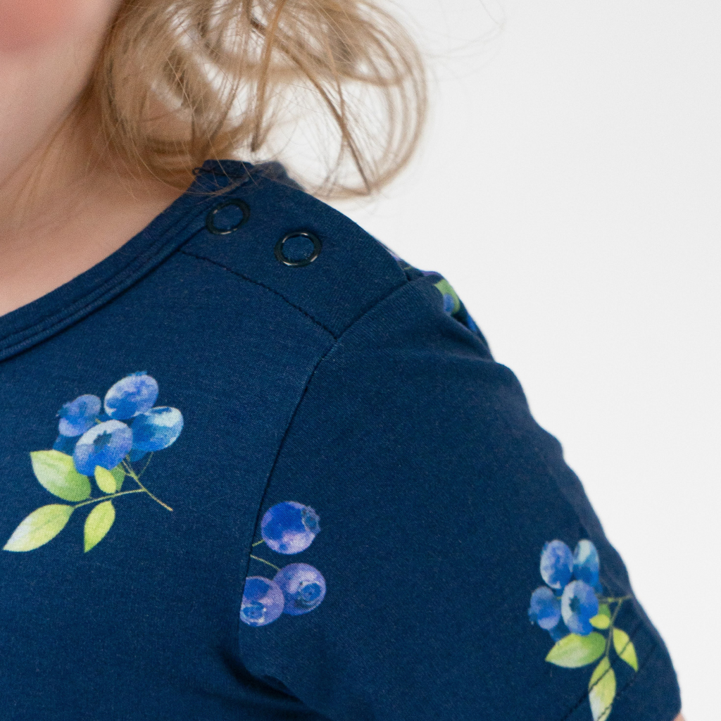 A summer time favourite! Our Blueberries print features of clusters of juicy blueberries on a deep blue background.
