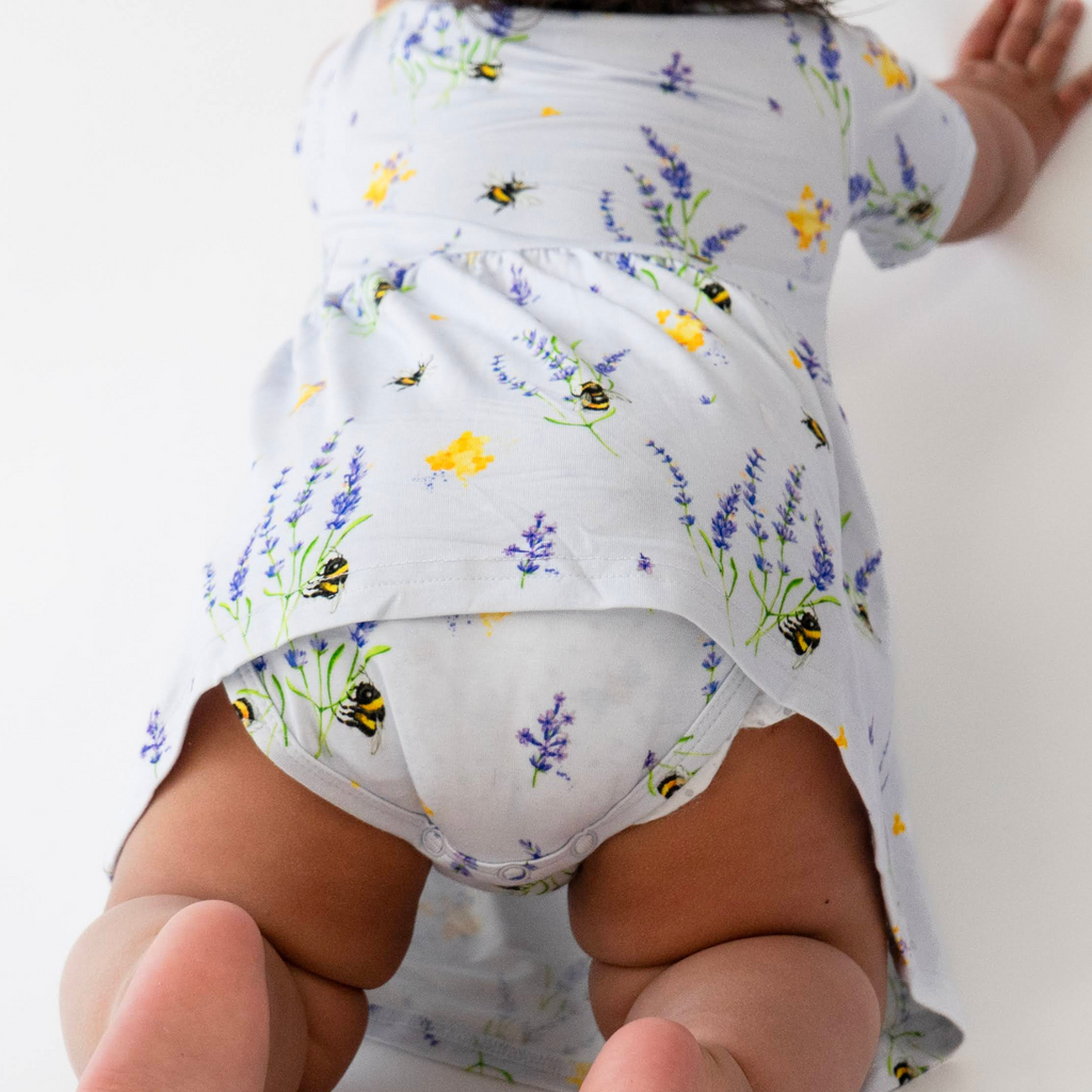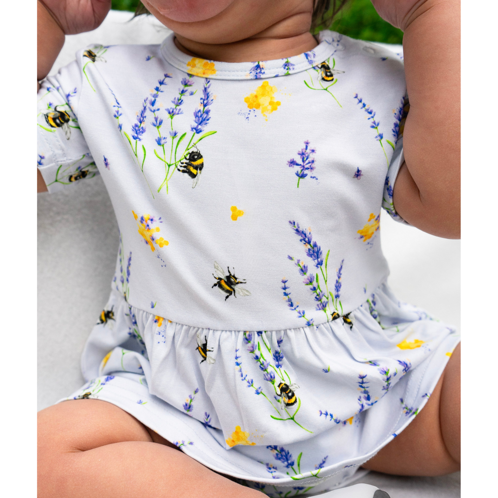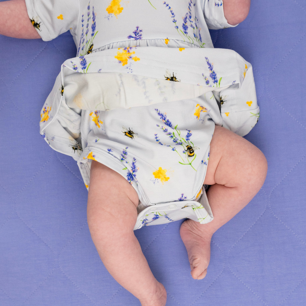 A girly twist on a classic onesie! Our skirt onesie features a ruffled skirt at the waist, making this an easy daywear style for babies. With a snap bottom and an envelope neckline, this style is easy to put on and makes quick work out of diaper changes. Made from our premium Bamboo Rayon, this onesie is the perfect daywear basic for babies.