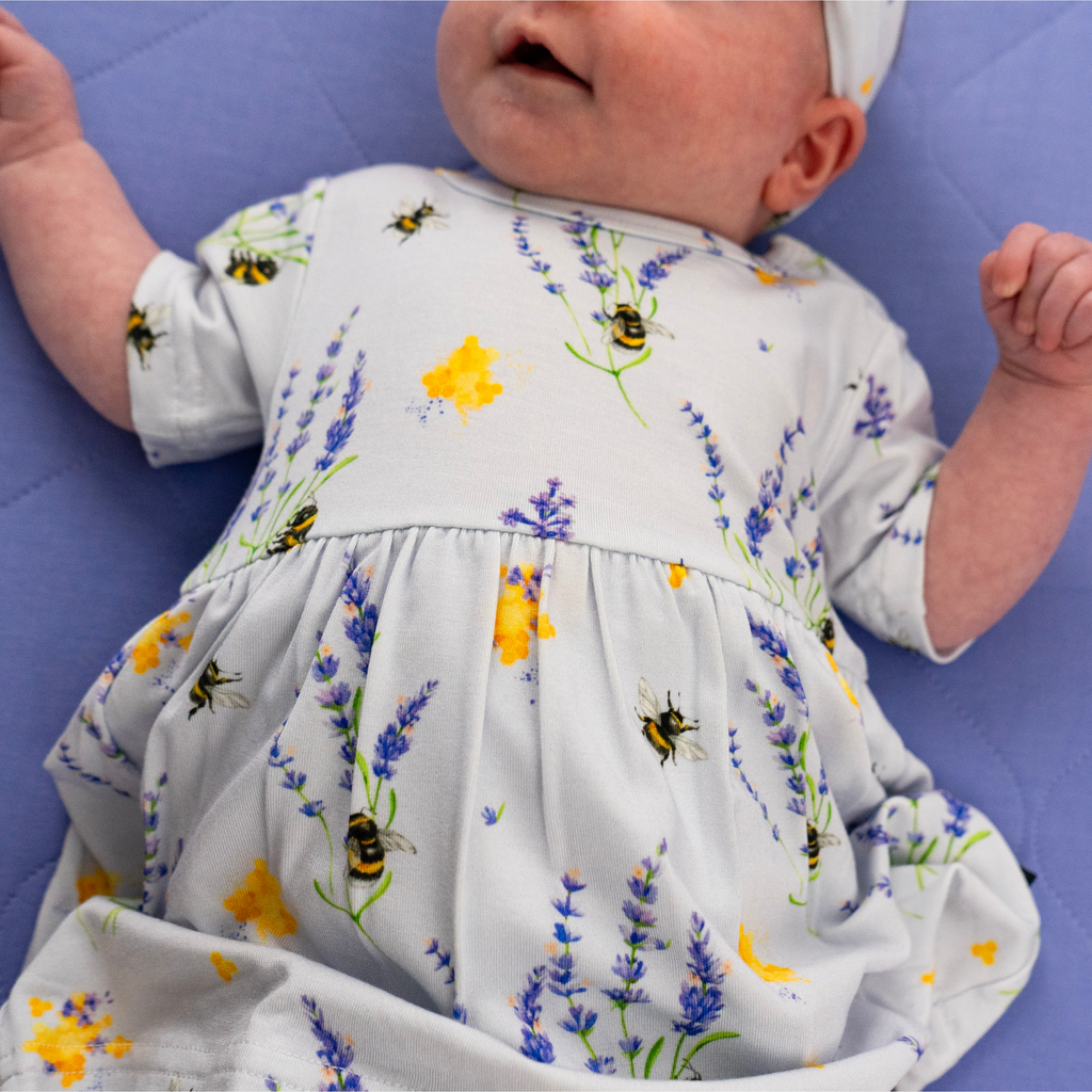 A print near and dear to our hearts. Sweet B features lavender blooms and sweet bumblebees digitally print on a soft purple background. This print celebrates a member of our Belan.J community who left us too soon.