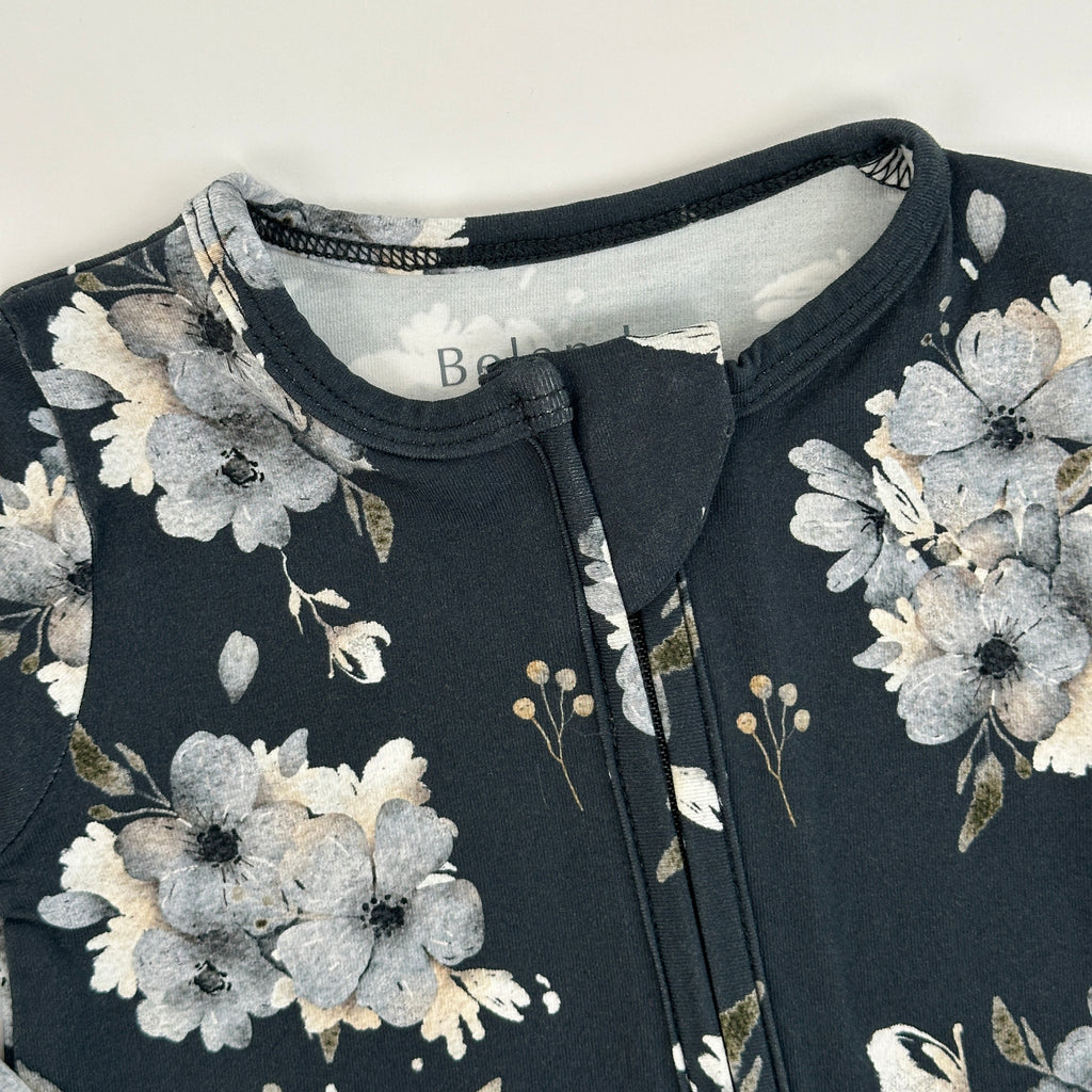 Footed Zipper Sleeper - Frosty Floral (Navy Blue)