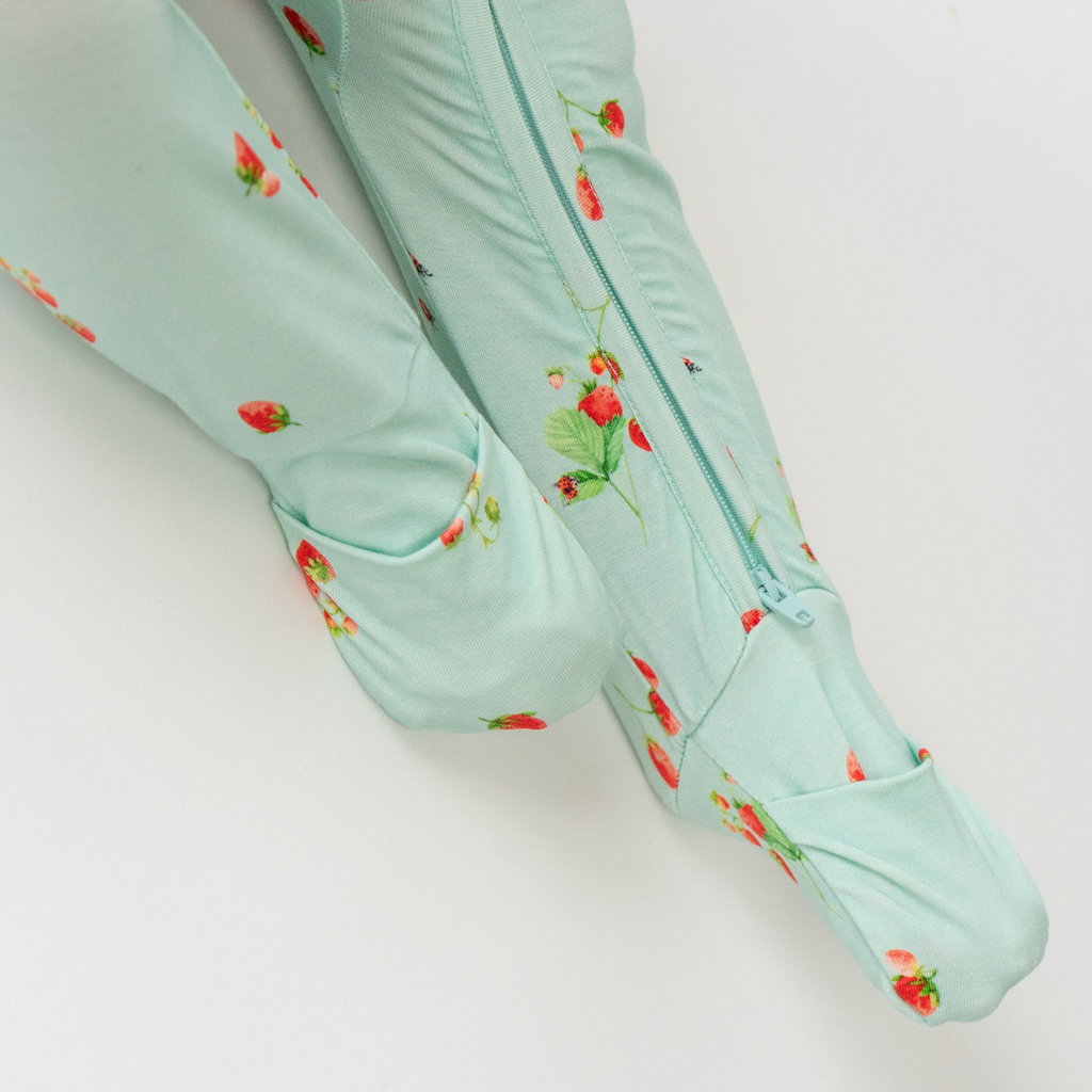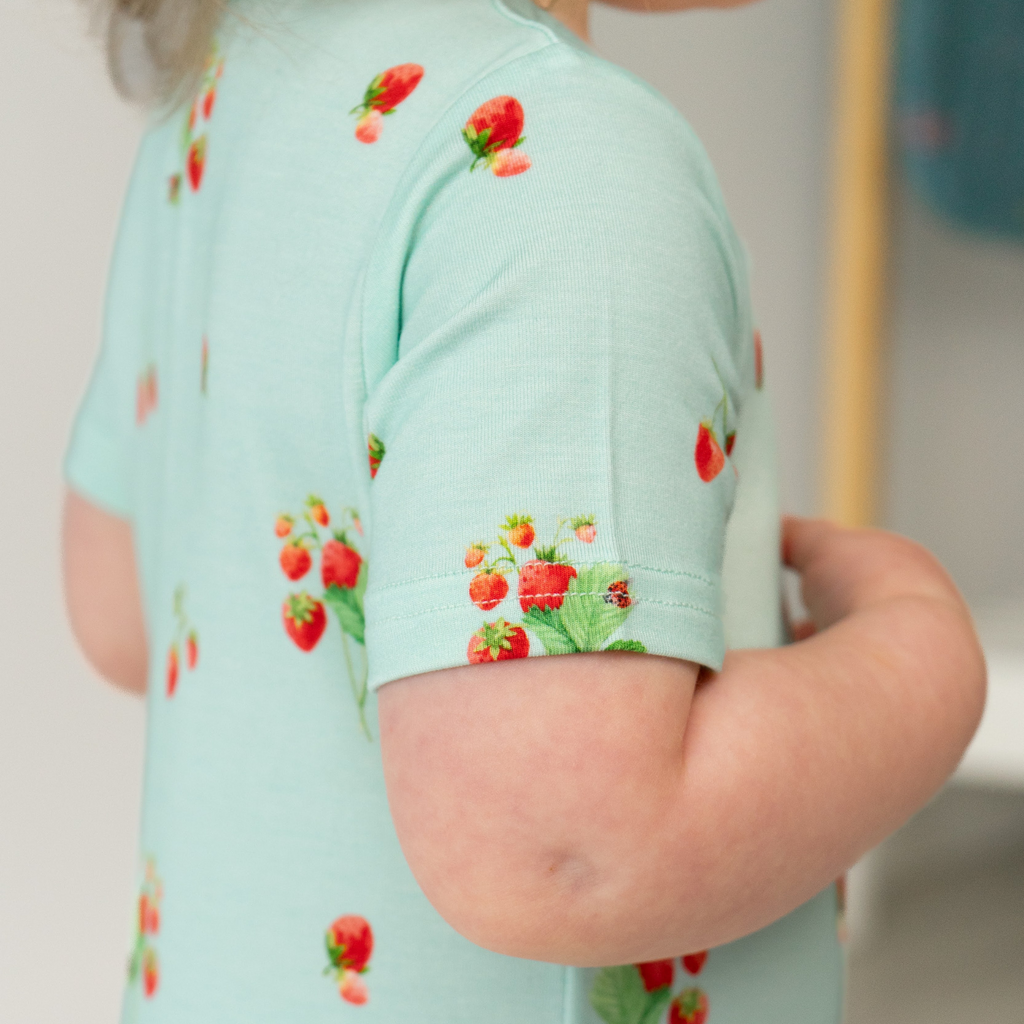 Wild strawberries and little lady bugs adorn our Strawberry Garden print. This print is digitally printed on a soft green background.