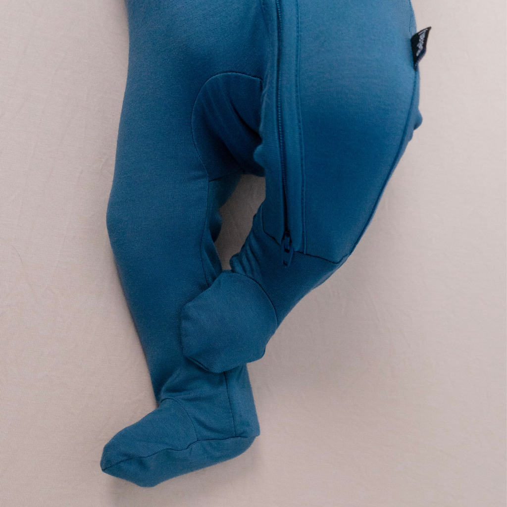 Footed sleeper made in buttery soft bamboo rayon for the perfect night sleep. Bamboo is very breathable and moisture wicking which makes it the ideal fabric for infant sleepwear. 2-way zipper closure makes for easy diaper changes while fold over cuffs* and chin guard keep baby safe from scratches and pinches. Sizes 6-12M & 12-18M have silicone grippers on soles to prevent slipping.