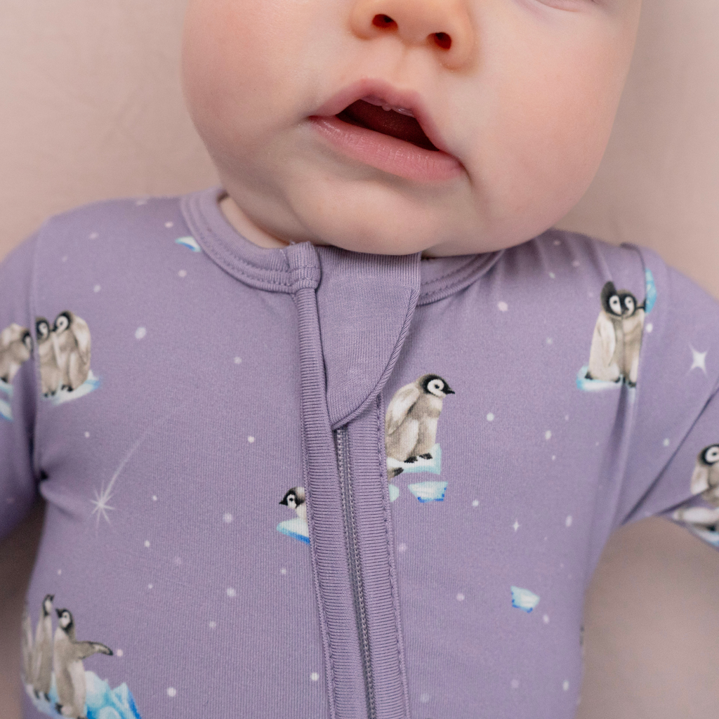Footed Zipper Sleeper - Penguins (Periwinkle)