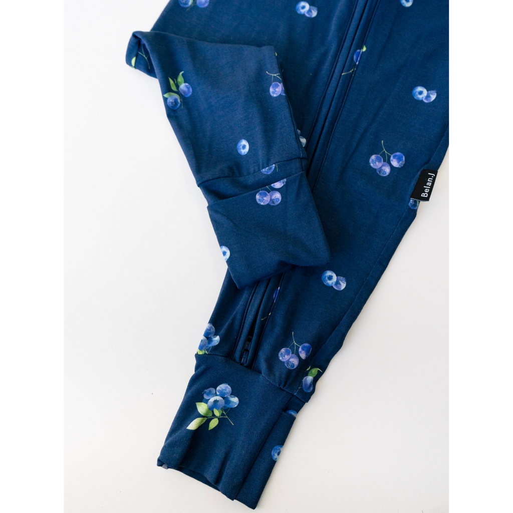 Short Sleeve Zipper Romper - Blueberries