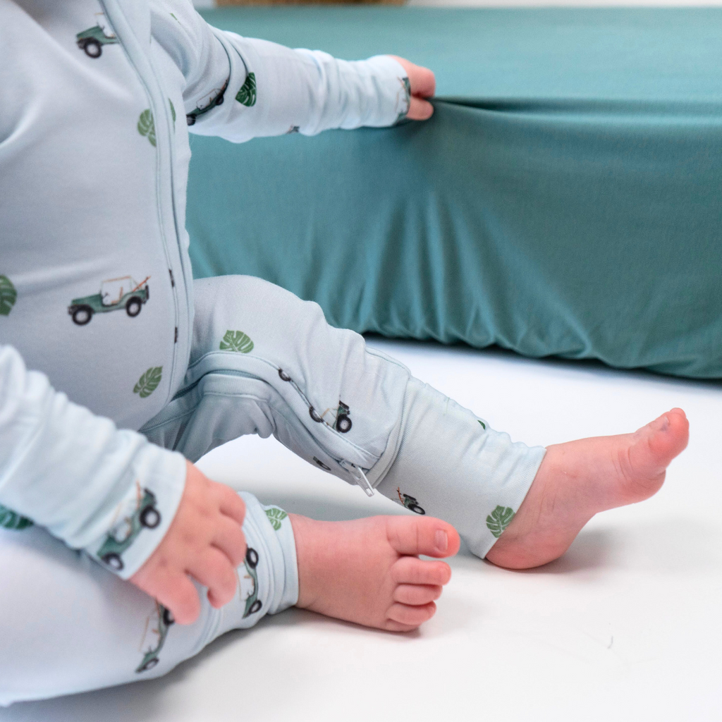 Footless sleeper crafted in buttery soft, premium bamboo rayon for the perfect night sleep. Bamboo is breathable and moisture wicking which makes it the ideal fabric for infant sleepwear. 2-way YKK zipper closure makes for easy diaper changes while fold over cuffs and chin guard keep baby safe from scratches and pinches. Sleeper features fold over foot cuffs to give the option to cover the feet on cooler nights.