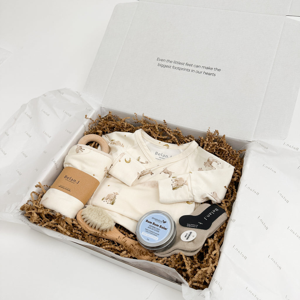 This gift box is perfect for baby showers or as a welcome-home gift, the Belan.J Newborn Gift Set combines practicality with luxury, ensuring your baby feels loved and cared for from day one.