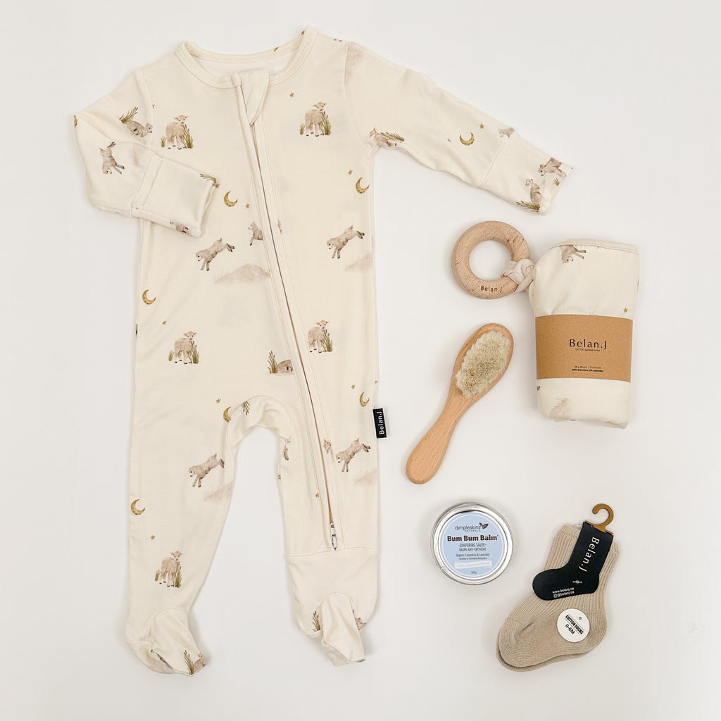 Welcome your little one into the world with the Belan.J Gift Set, a thoughtfully curated collection of baby essentials designed for comfort, care, and style. Made from ultra-soft, breathable bamboo fabric, this set offers gentle care for your newborn's delicate skin.