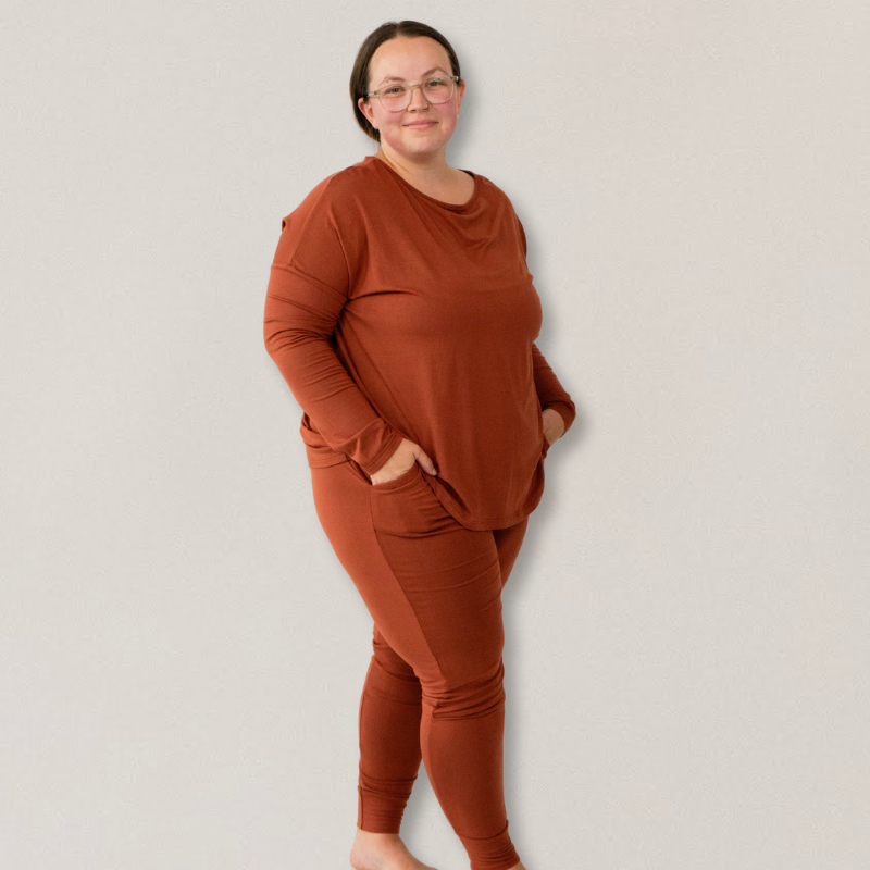 Made from our premium Bamboo Rayon, this set was made for cozy cuddles. The top features a comfortable loose fit in a boxy style through the torso with drop shoulder fitted sleeves and a mid-hip length. The jogger pants feature a comfortable wide waistband with a functional drawstring, front pockets and a relaxed fit with a cuff.
